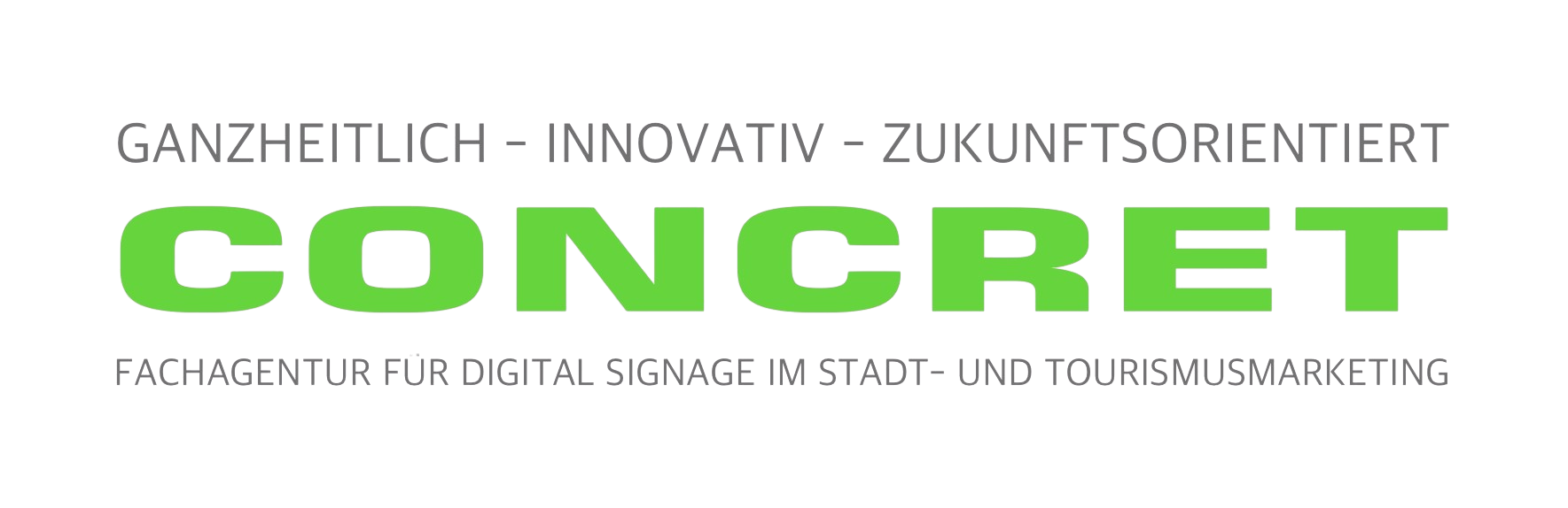 Digital Signage bezeichnet den Einsatz digitaler Displays und Bildschirme zur Anzeige von Informationen, Werbung oder interaktiven Inhalten. CONCRET Marketing entwickelt ganzheitliche Digital-Signage-Lösungen für Städte, Tourismusverbände und Unternehmen.